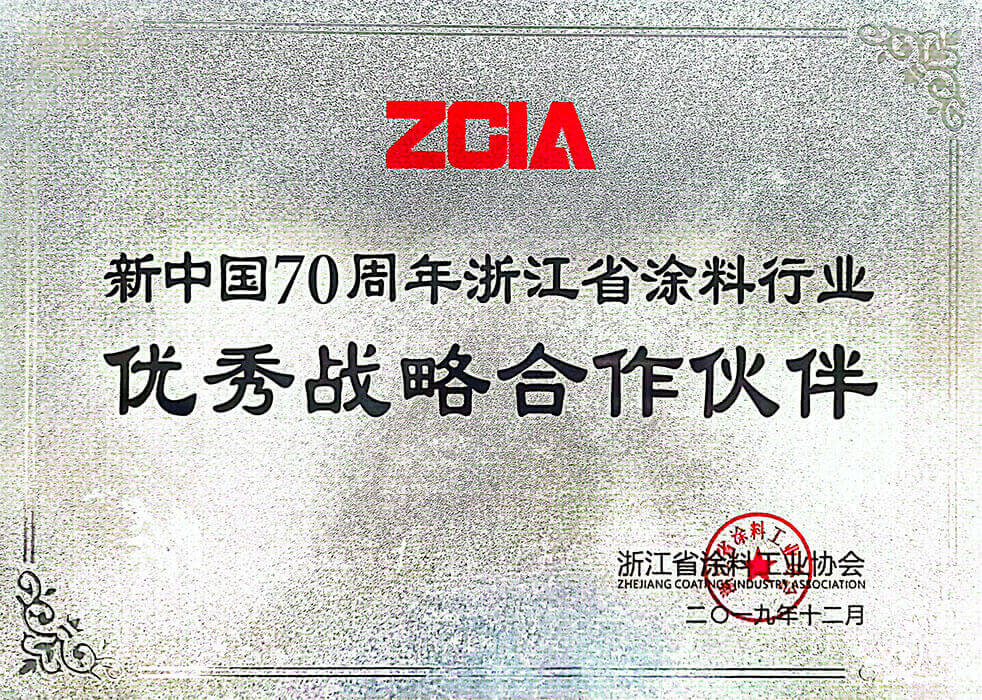 新中國70周年浙江省涂料行業(yè)優(yōu)秀戰(zhàn)略合作伙伴