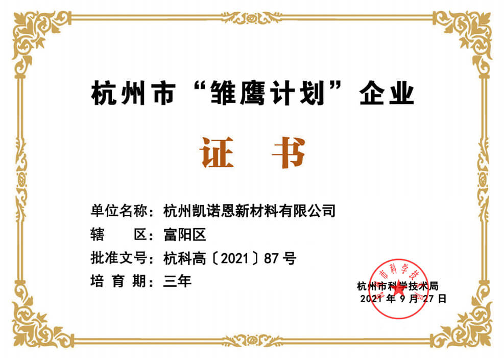 杭州市“雛鷹計劃”企業(yè)證書